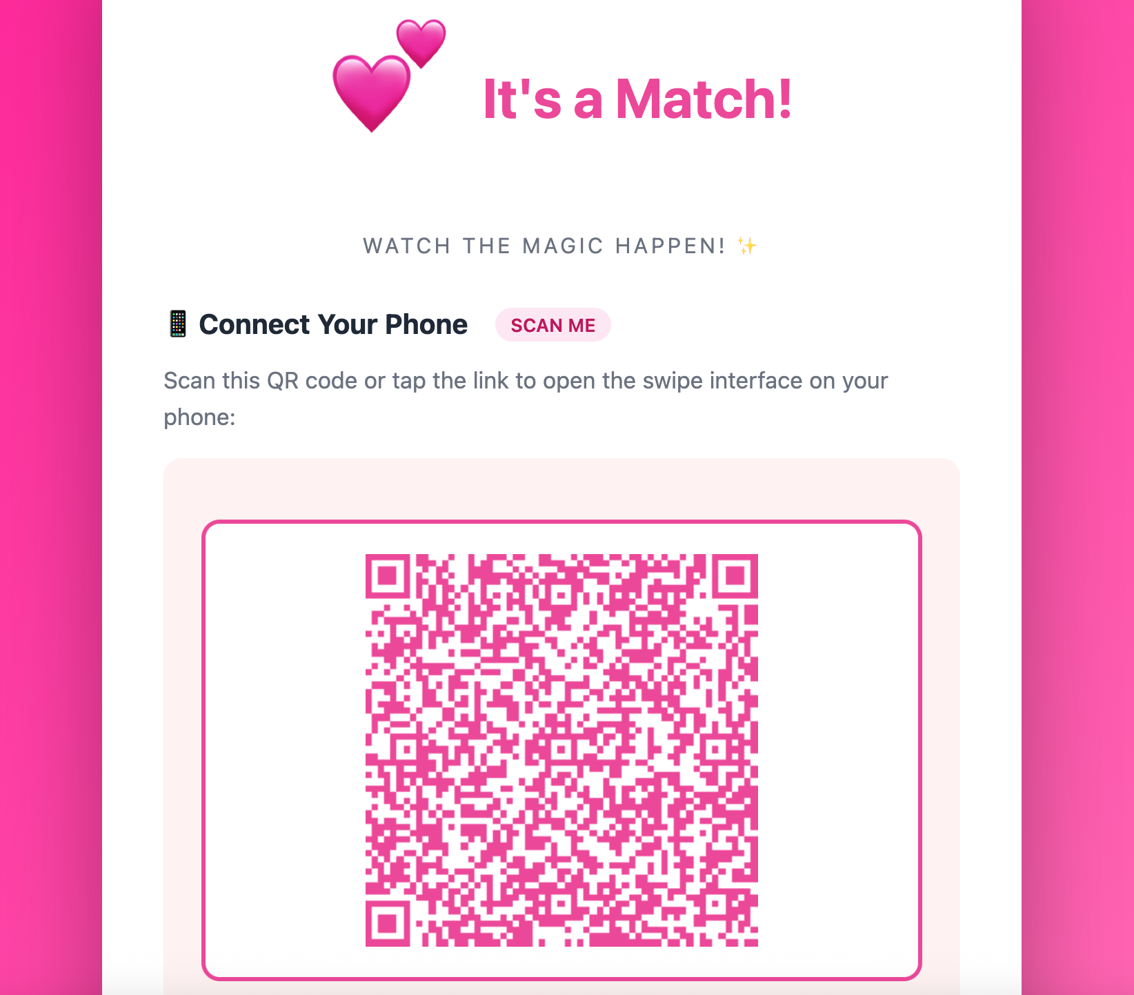 - Visit or refresh the match app and scan the QR code to connect your phone.