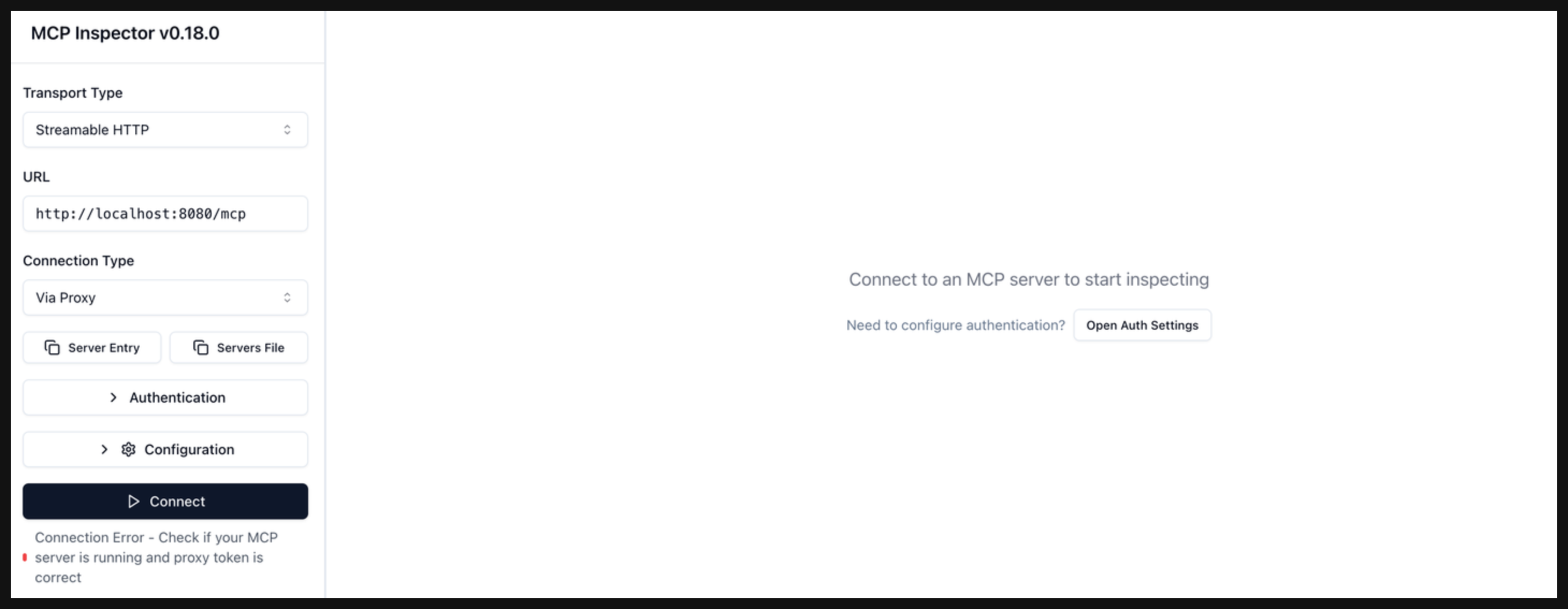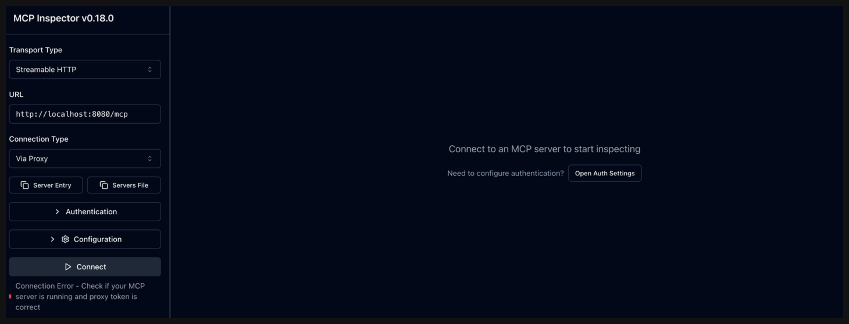 - Click Connect to connect to your MCP server.